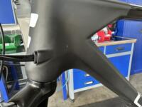 Größerer Kratzer rechte Seite am Unterrohr. Kleiner Kratzer am Lenkkopf und kleiner Kratzer am Oberrohr.